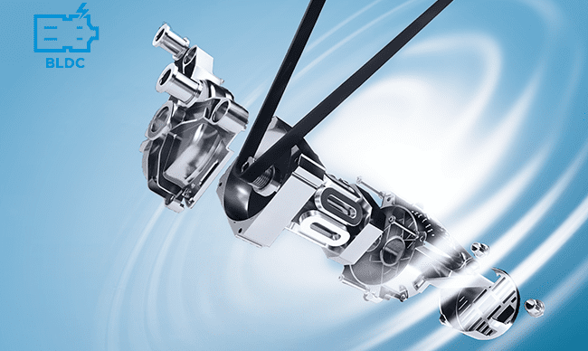 Ovaj motor prevladava urođene mane klasičnog motora. Četkice i komutator zamijenjeni su elektroničkim upravljanjem čime su izbjegnuti gubici energije i iskrenje. Upravljanje brzinom je puno efikasnije i prilagođeno potrebama ciklusa pranja. Sam motor je puno trajniji jer je trošenje materijala i komponenti bitno smanjeno.
